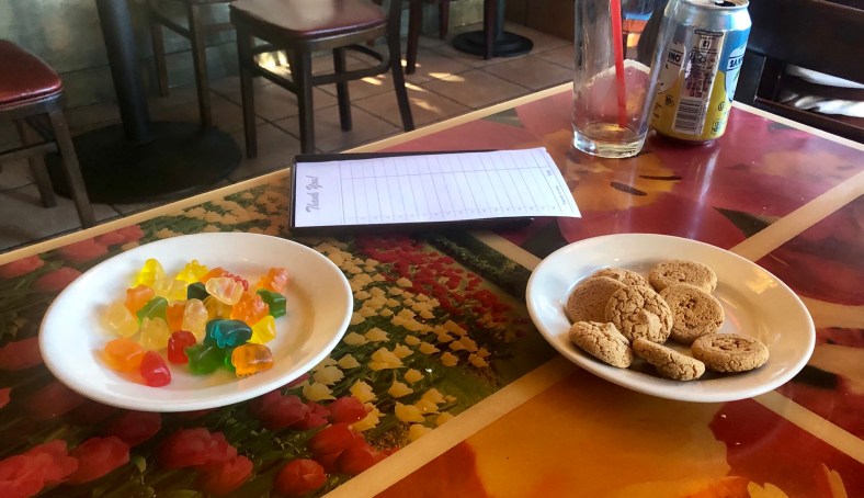 Dinner was at “Michaelangelo” a great Italian restaurant – solid, traditional, delicious. And bottomless cups of iced tea – bonus! At the end of the meal, along with the bill, we were given a plate of gummi bears and a plate of ridiculously tasty almond biscuits – a lovely way to finish dinner. A good tip was assured.