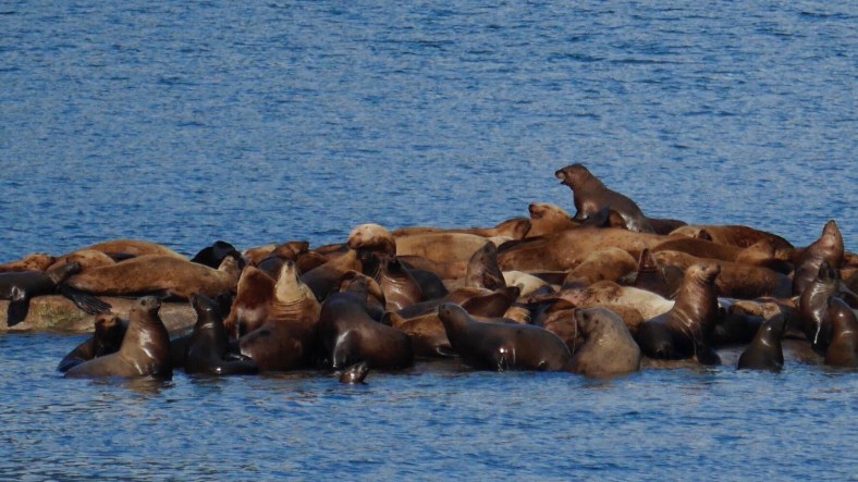 After heading back from the glacier we passed the land of many seals – and many more birds.