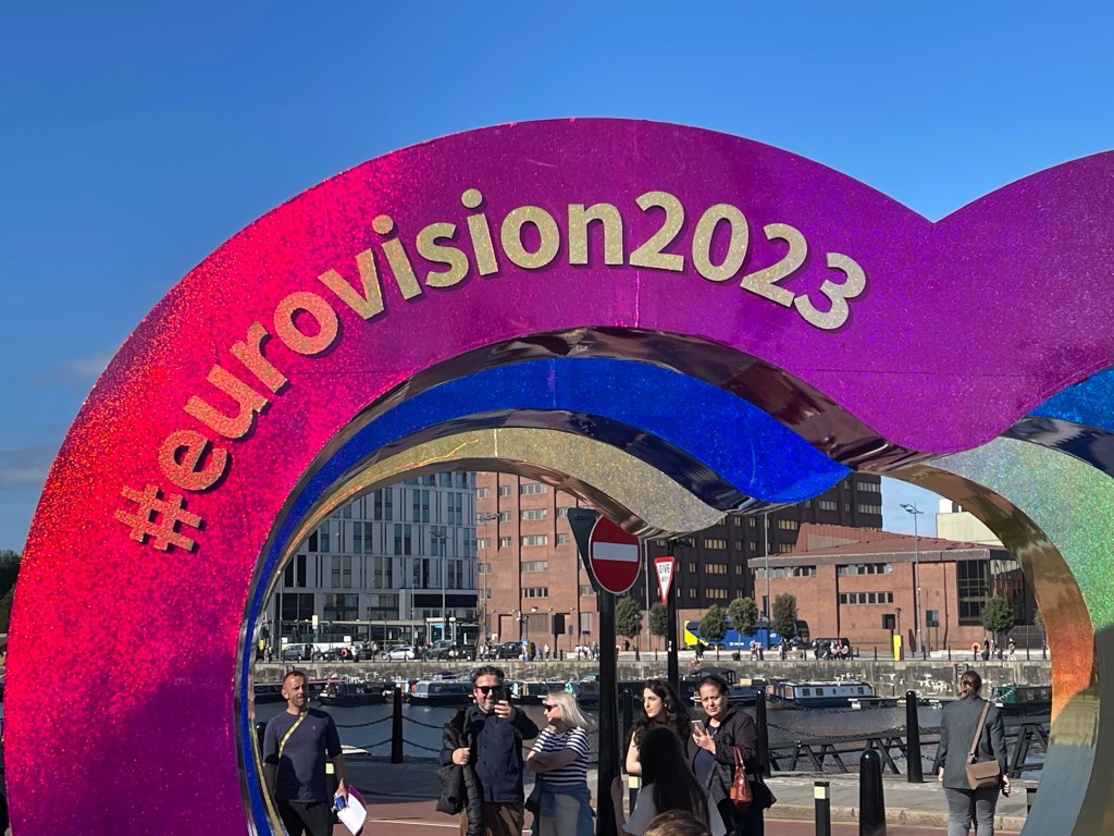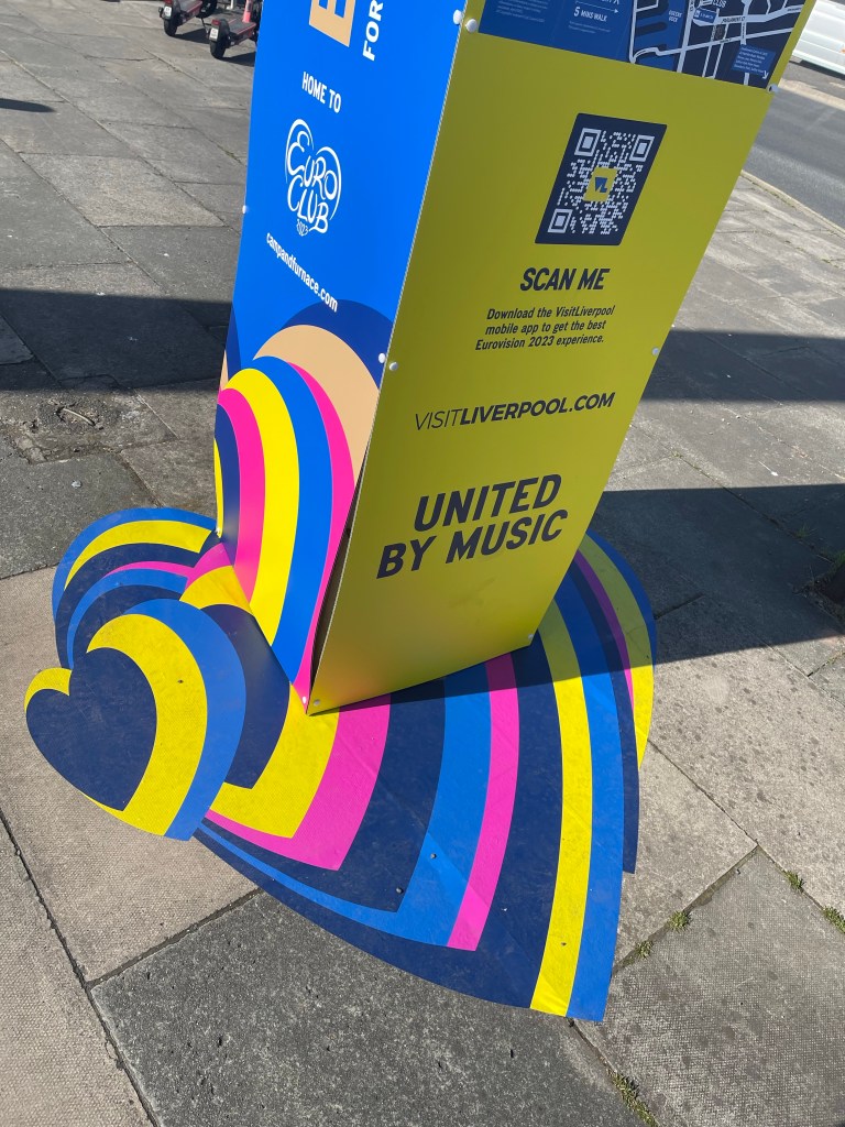 Liverpool Lime Street was full of Eurovision fans all trying to work out where they had to be and what they had todo. (un)Helpfully, a number of streets nearby were blocked off including the Taxi rank, which was super useful when there weren’t any signs. Still, a blocked off road doth carry no taxis, so I found an unblocked road, and shortly after, were in a cab to our destination. I kinda feared the worst, the taxi driver’s card machine just happened to be ‘broken’ so he could only take cash, and he didn’t set the meter, I figured he knew an easy tourist target when he saw one. But I kept an eye on my map on my phone and he did take the most direct route, and it was £16 – about a pound a minute, but honestly I was expecting him to charge a lot more. Still, whatever it was, there was no way I could have walked it, so all worth it.