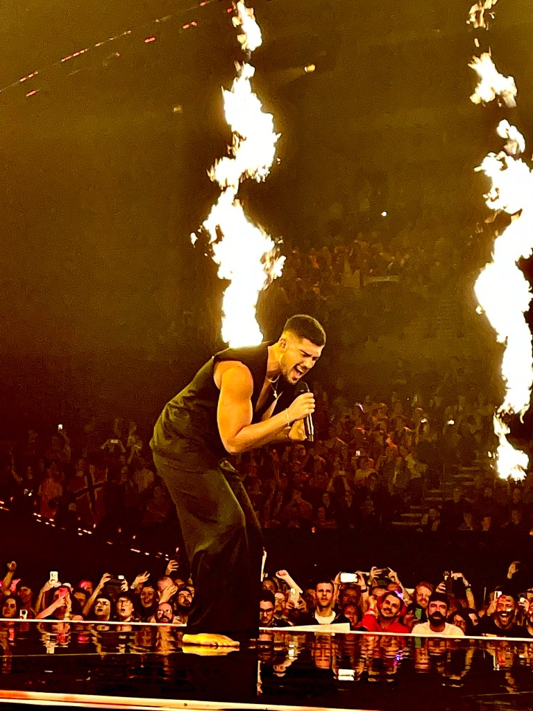 Anyway. Liverpool put on its best weather – it was raining. But luckily it cleared up just in time to walk to the Arena. It was the usual hurry-up-and-wait, but it felt like for many people if was their first show so a lot of excitement in the air. Thought I must admit it was funny, after seeing them get through the security check so any of them went sprinting off, thinking they were going to get a great standing position in the arena, only to realise a bit later on that no, they had successfully sprinted only to the next place where everybody to wait together, not in a queue, so rushing gave them basically no advantage at all. They’d not read the Tortoise and the Hare, obviously. 🙂