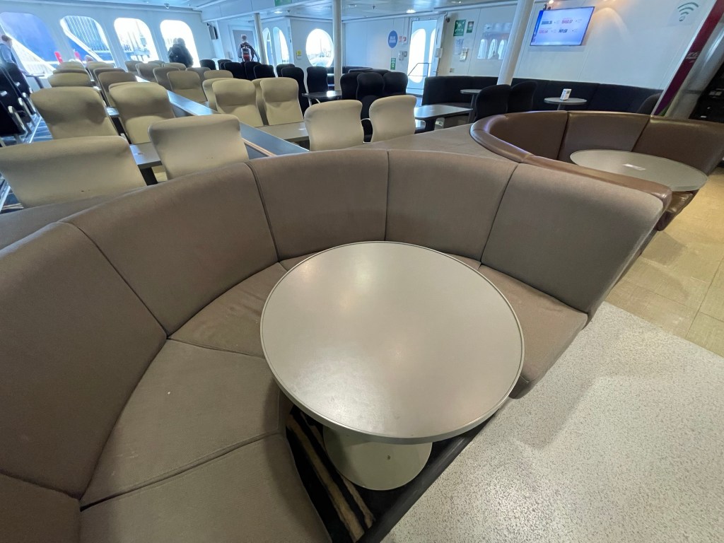 We caught a Stena Line ferry over to Dublin, so for the heck of it I booked the other one, Irish Ferries, for the trip back to Wales. The check in process was super simply, just ‘yeah throw your bags over there on the belt and go up the escalator’. Too easy. Just had time to smash a coffee at a little cafe in the terminal and next thing you know it was time to get on another bus to be taken over to the ferry. This time, the bus didn’t dump us inside the ferry itself, just near the front, so we walked in. Their signage was on point, before we knew it we were at the door to the Club Class lounge, where we paid a few extra bucks for some free snacks and drinks. We found seats, settled in, I grabbed a free glass of Apple juice, and … next minute it was already time to disembark!