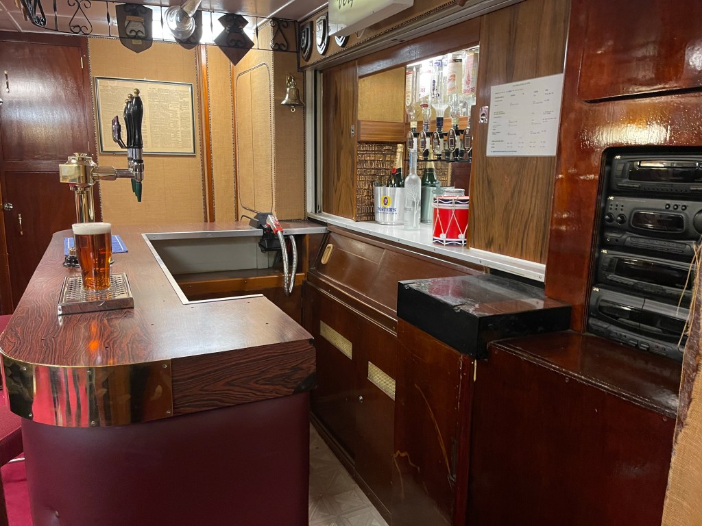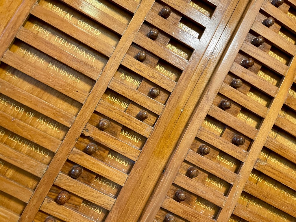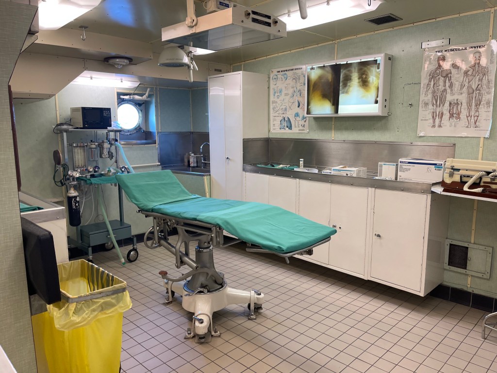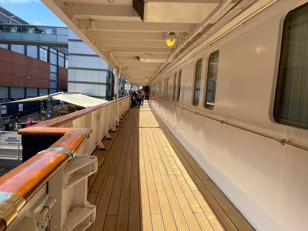 Things did get a bit more fancy in the formal dining room which I think could sit around 59 guests. The table could take up to 3 hours to set, with each piece of cutlery placed and checked with a ruler (like, not the Queen, I mean a measuring stick with numbers on 😉 ) . There were about 220 staff on board, I’m not sure if that included the people needed to keep it going or also the Queen’s staff as well. But I can imagine it wouldn’t exactly have been cheap to operate.
