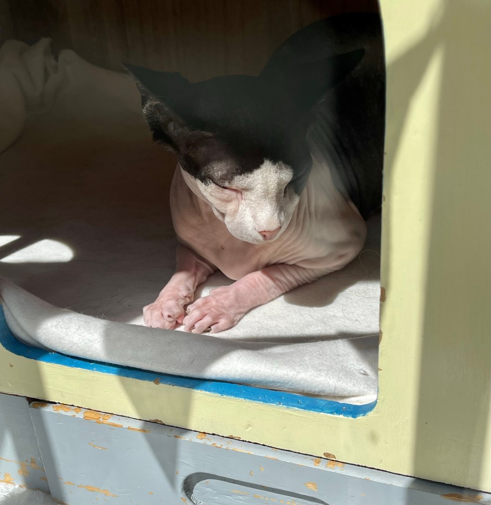 Then it was back on the bus, past more and more beautiful old solid dependable buildings. We had a milkshake at Grassmarket, an area chock full of restaurants and one (fully booked out) cat cafe – but happily some of the cats like nothing better than to sleep in the windows.