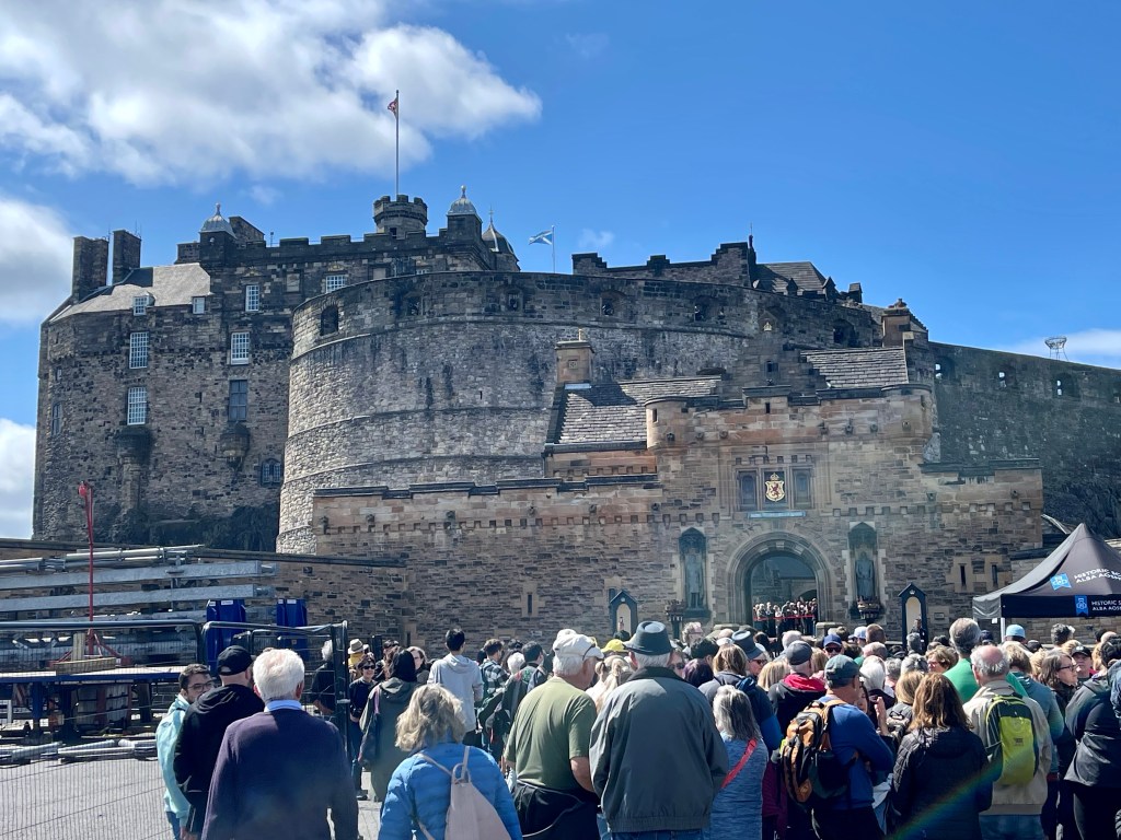 We didn’t have tickets to visit Edinburgh castle itself, but that’s OK, I was more than happy to just stand in the carpark knowing that’s where the Edinburgh Tattoo happens every year. They’re currently busily re-installing the arena seating which really just clings on to the edge, you’d have to hope it’s really tied down well enough to stay put.