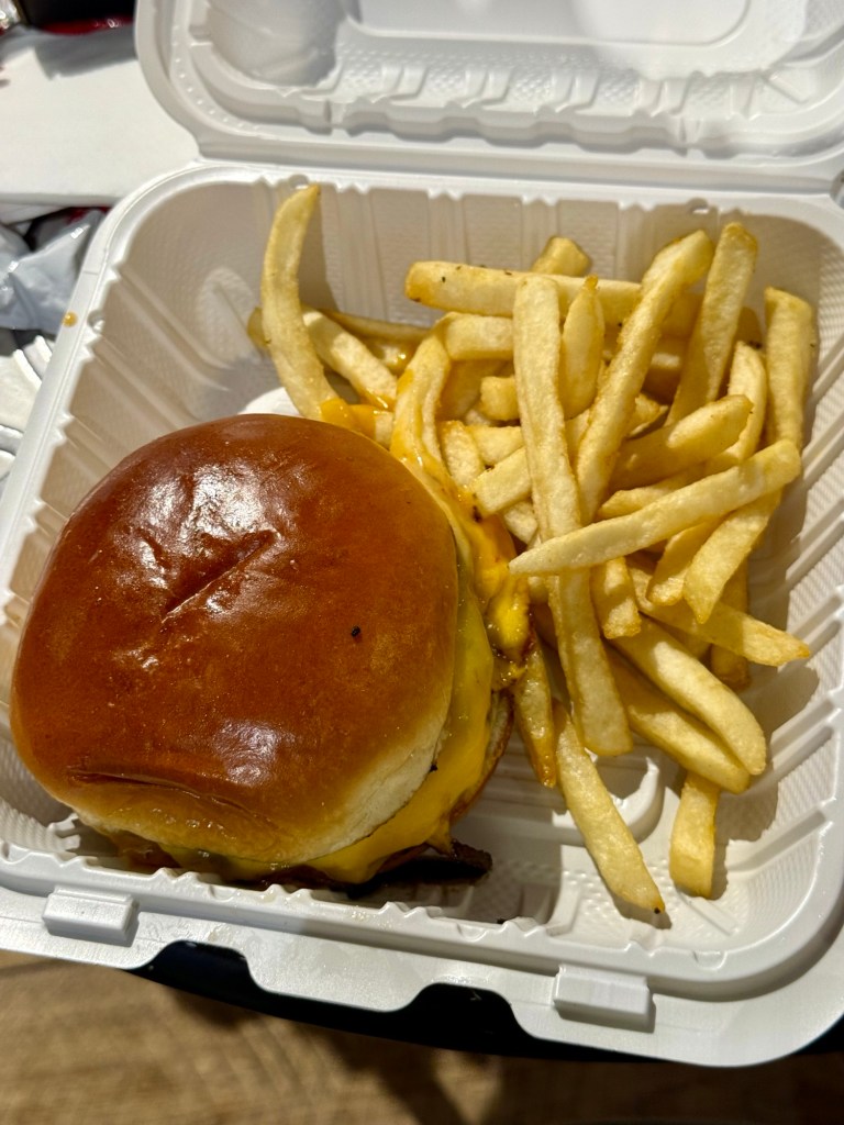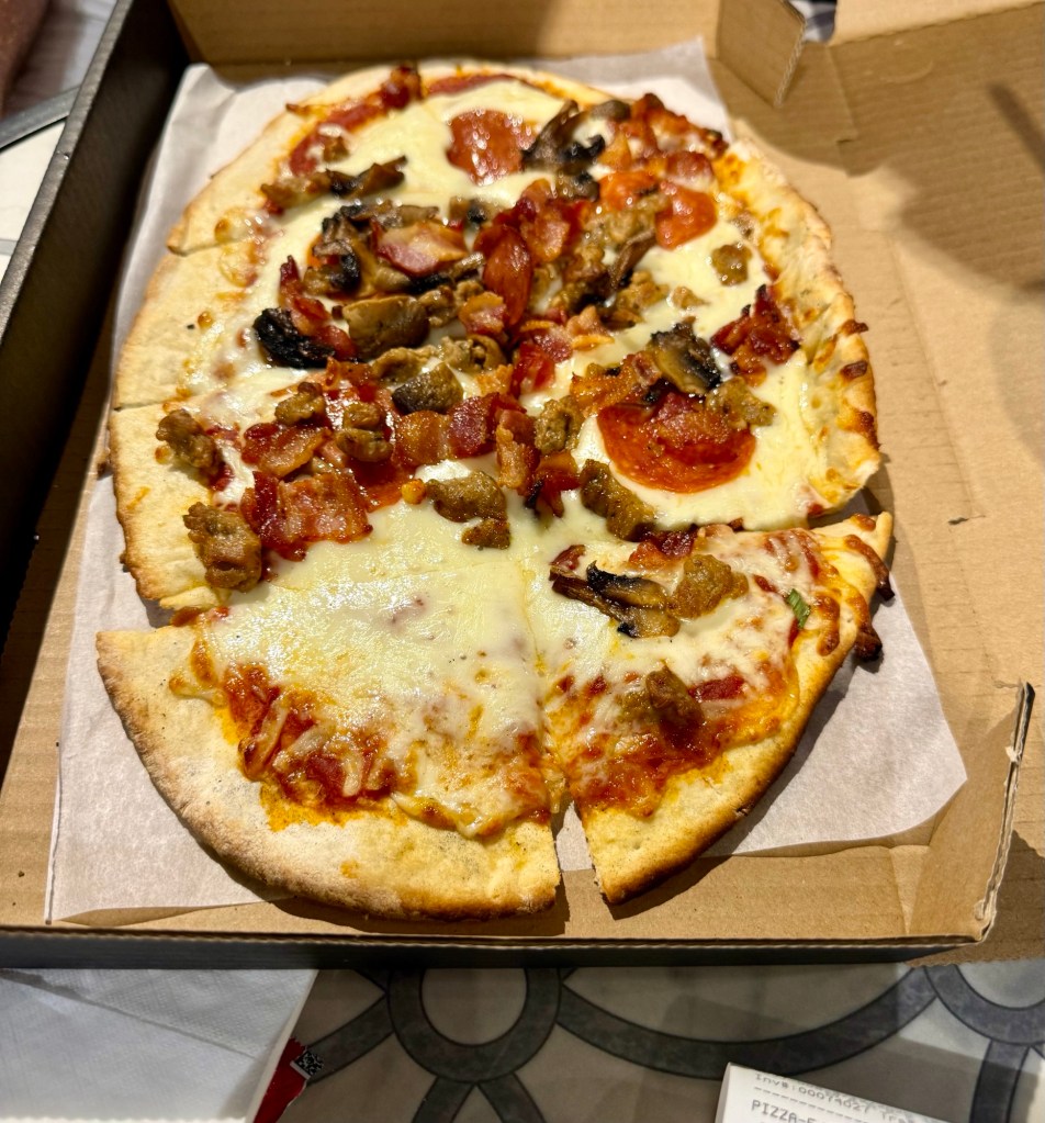 Dinner was in one of many small food courts that seem to dot the place nowadays – but it was good stuff, a burger and a flatbread/pizza.