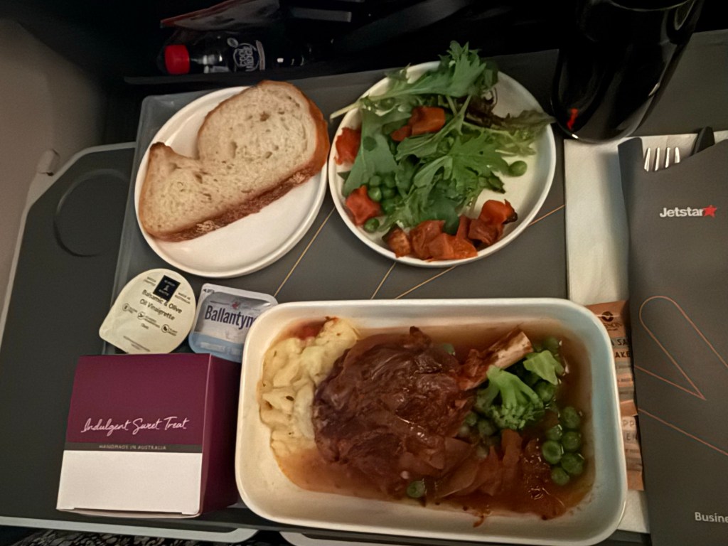 OK OK I know it’s kinda the done thing to poke fun at Jetstar but the food was included in the price (sorry economy passengers!) and it wasn’t bad food, just kinda normal airline food, I guess. Kept us fed for the whole time we were in the air so probably time to stop whining about it and move on, and time to tack on another note about how good the Jetstar cabin crew were.