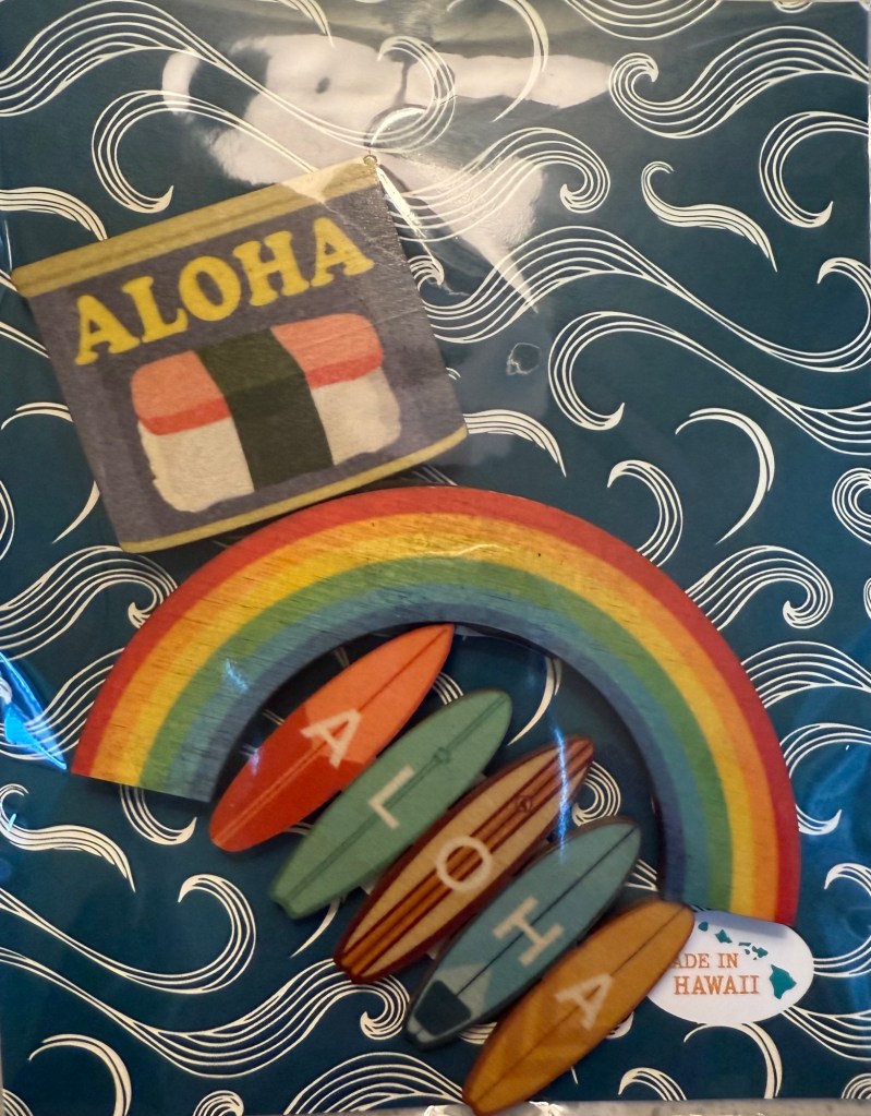 There was also a nice shop selling completely made-and-designed in Hawaii wooden souvenirs, so of course we could get a couple. I noted to the person at the till that I didn’t buy because the exchange rate is low with the current economic conditions and she was all “mmm.hmmm… girl’s got comments on that but, you know…” 🙂
