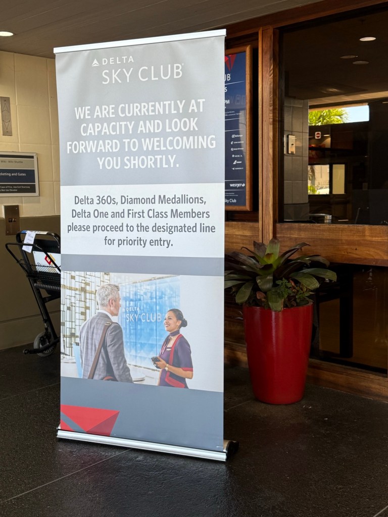 After arriving at Honolulu airport we thought we’d have a bout of time to just relax in the lounge before out flight because we’re flying “first class” – which is really business but never mind. The lounge was full so we only had a short amount of time there, but enough for a nice cold drink at last. The walk to the gate was around 20 minutes, Honolulu has a pretty big airport!