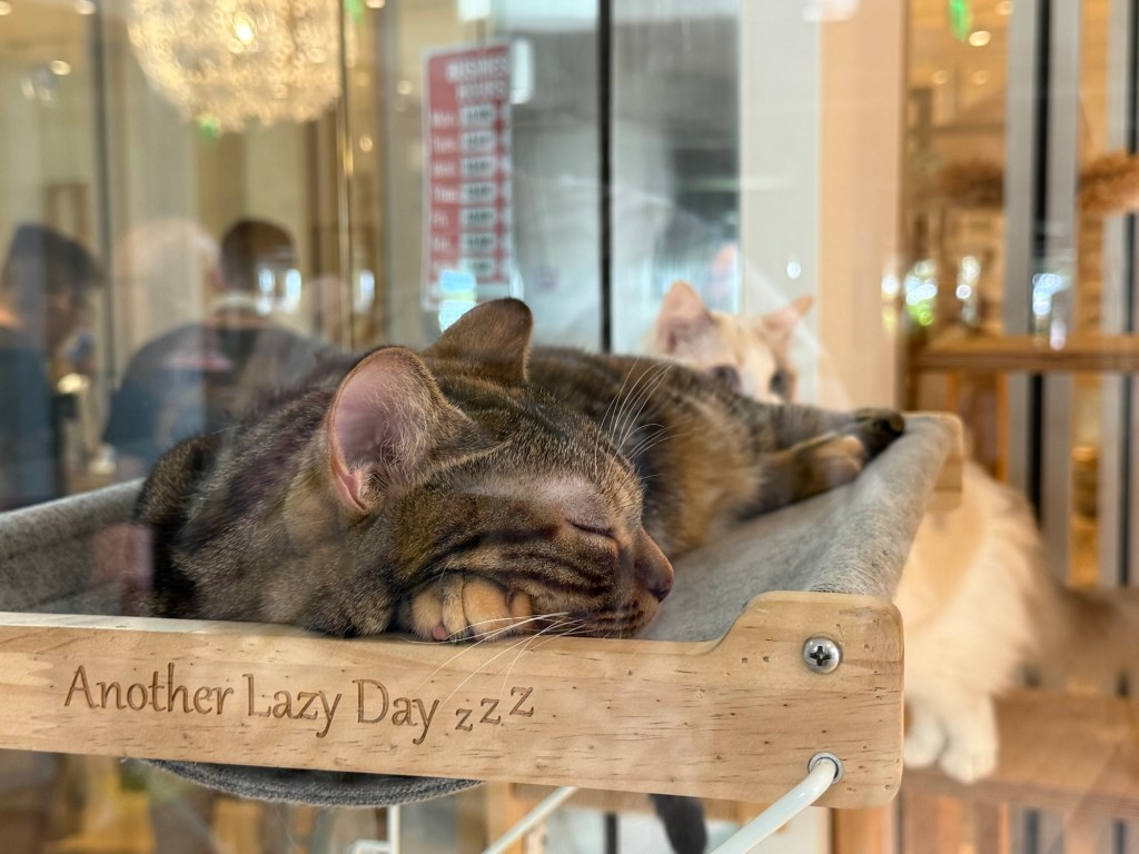 It wasn’t so much ‘shop til you drop’ but ‘shop til you can’t ignore the exchange rate any longer’. So much so that we even said no to the Cat Cafe they had there, as it would have been nearly $75 AUD for half an hour with the kitties. But, taking photos through the window was free, so I got to work …