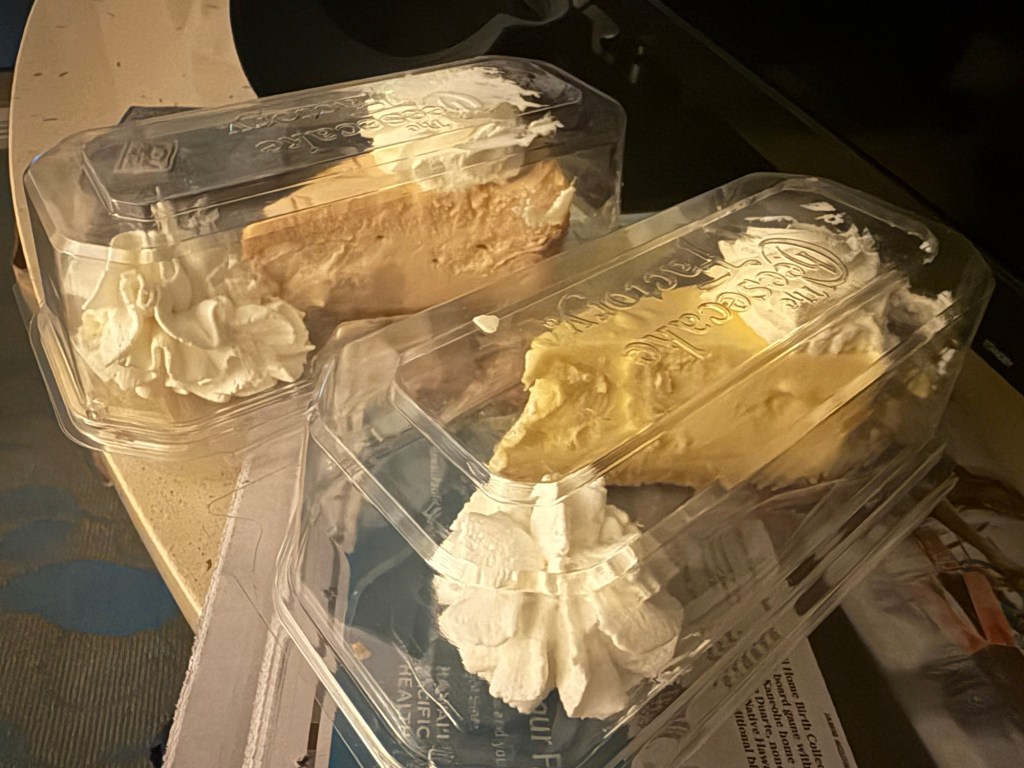 For dinner we followed a tried and tested Hawaiian tourist tradition and tried our luck at The Cheesecake Factory. A restaurant with a ridiculous number of dinner options followed by a ridiculous number of cheesecake options to follow. And ridiculous portion sizes so you don’t have room for cheesecake anyway. We were pretty lucky (ok, not all luck, because we went for a super early dinner around 5:30), because we only had to wait about 15 minutes to be seated, which is pretty good for that place.