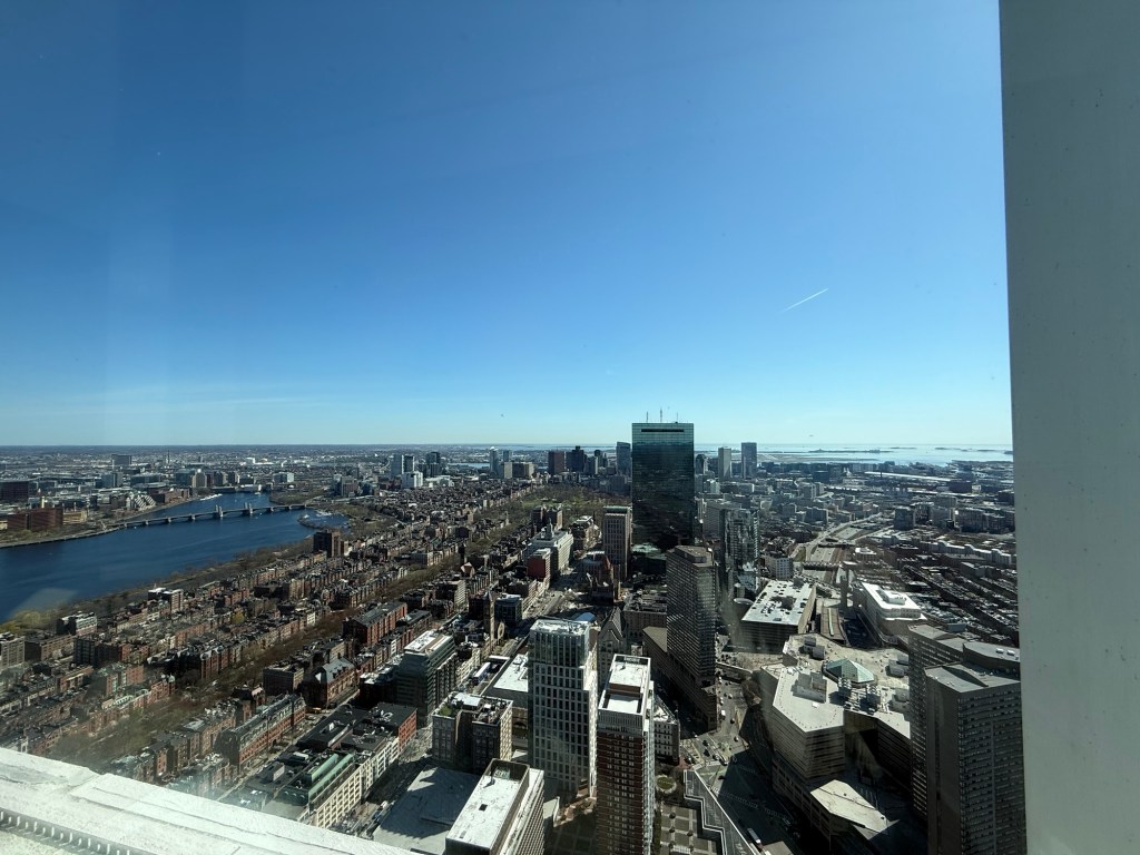 The first proper mission this morning was to View Boston. It doesn’t sound that difficult, you just … open you eyes, right? Well in this case View Boston is their ‘get up above it all and look over town’ – 52 floors up seems to be the highest building, and it sure gave a great outlook all across the town. Naturally I took too many photos, some of which are here:
