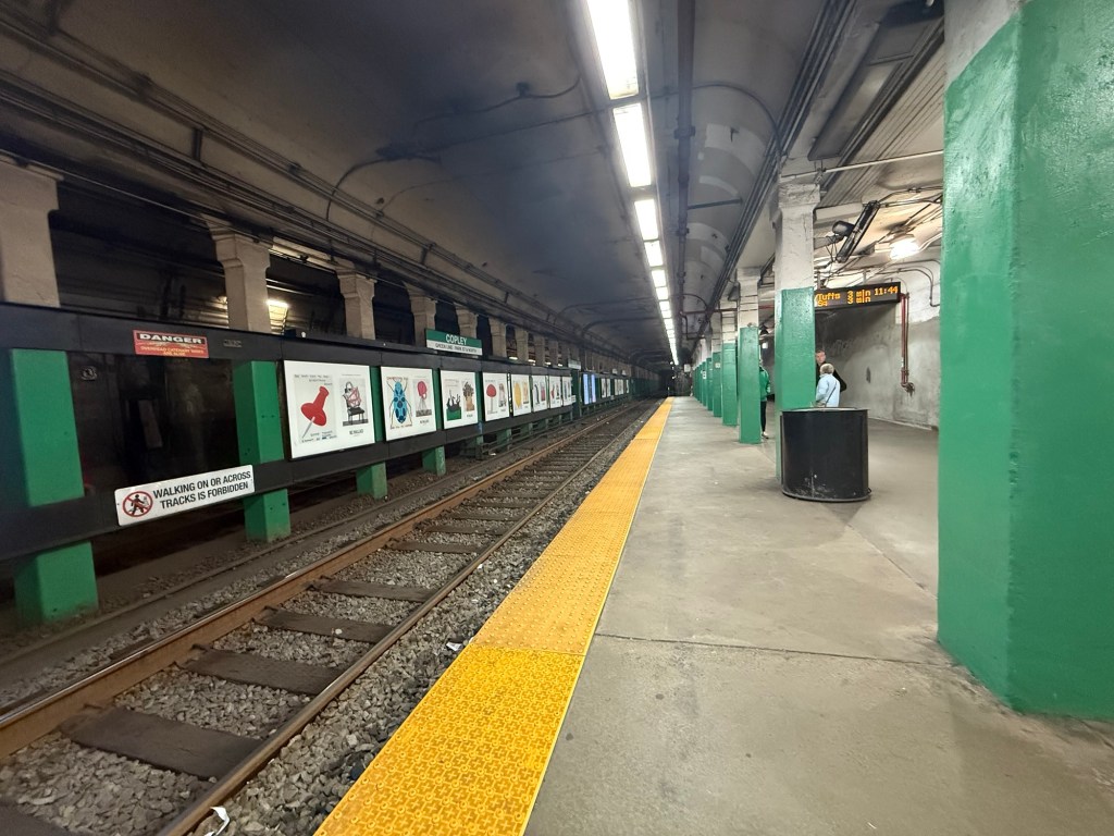 After the boat tour, we jumped on the train (Blue Line, Aquarium station), changed at Government Centre for the Green line and then back to ‘our’ stop, Arlington. Yes it’s too much irrelevant detail but I know in years to come I’ll probably want to know how got to where we were going. Another boring nerdy fact is the green line used overhead wiring and the blue line uses a third rail to power the train. Thrilling, I know.
