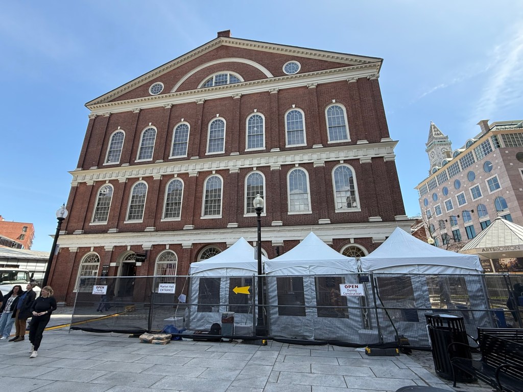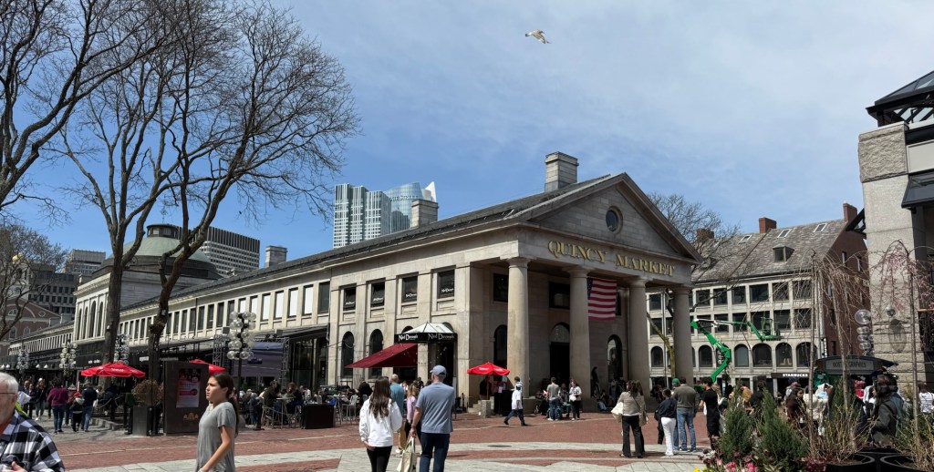 Now suitably caffeinated, next on the agenda was a visit to Faneuil Hall and Quincy Market, so we hopped in the train via the very fancy looking entrance at Copley, and went up to Government Centre, for a short walk to the hall and the market. Boston sure loves making signs about itself. And why not, it’s a nice place.