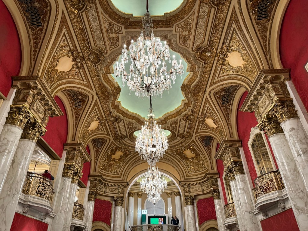 After a surprisingly tasty chicken Greek salad from Cafe Nero, in we went to the Citizens Opera House. I thought thats a feather egalitarian name, but no, Citizens is the name of a bank, so it’s just a sponsorship thing. Anyway, the Opera House, built in 1909 is just beautiful! The set design was also very good, setting the scene and fitting the show perfectly.