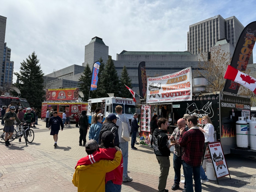 Sure enough, there were maybe a dozen food trucks around the park, offering a cray variety of poutine variations.