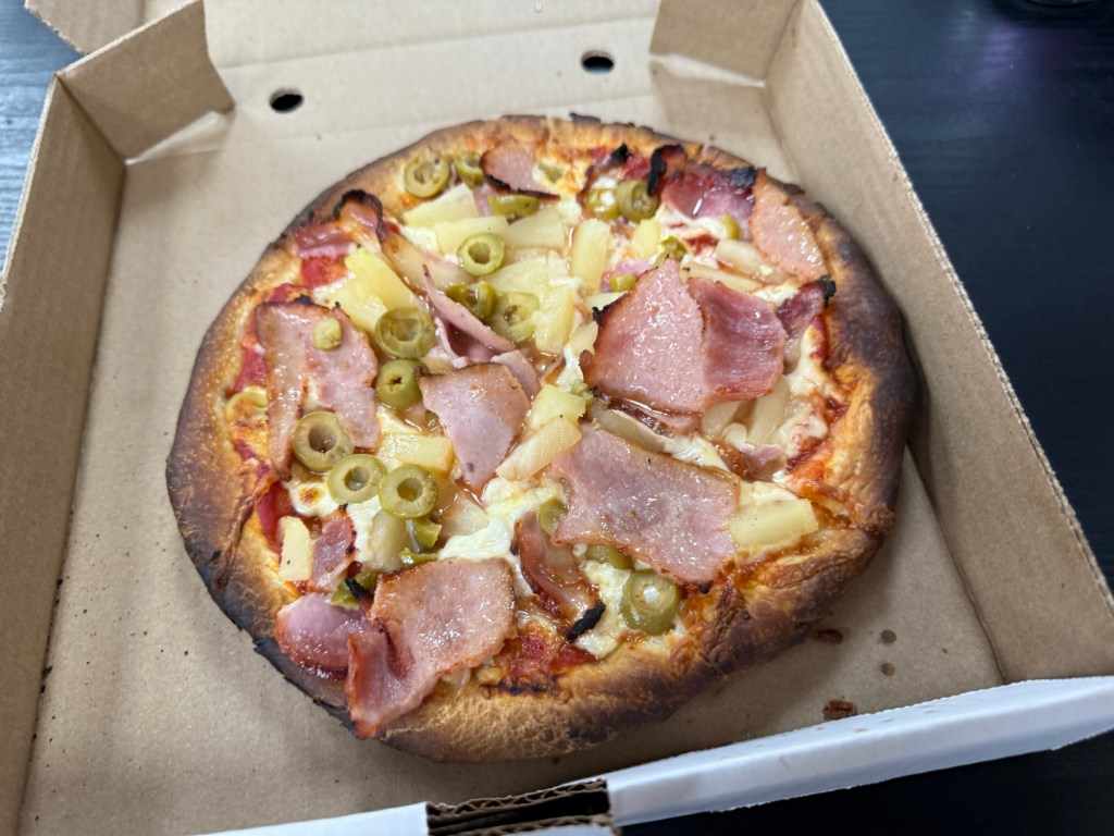 For dinner we didn’t venture too far, still trying to get the vibe on how feral the neighbourhood is, so just stopped off at a pizza joint that was more faded than glory – but the pizza itself was delicious. Yes it has pineapple on it and I am apologising to nobody! 🙂