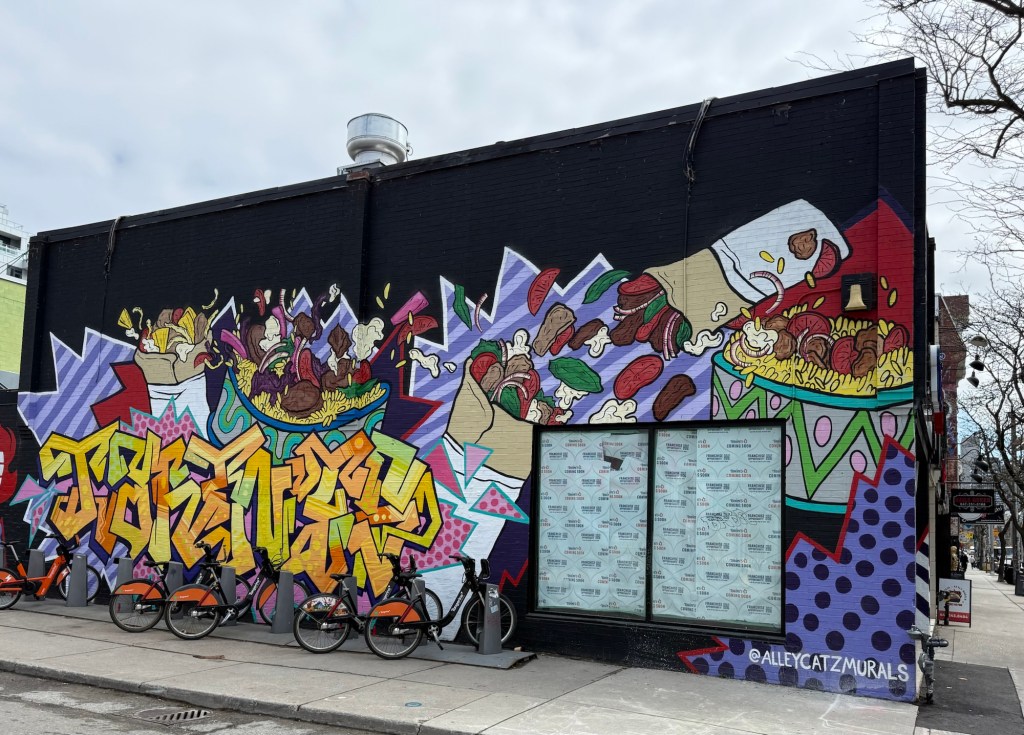 Good news everyone – Toronto has a cat cafe! So yes we dropped in for a visit. The walk up there was nice, saw some more local sights as we walked around. Toronto has some good quality street art around the place, reminds me a bit of home.