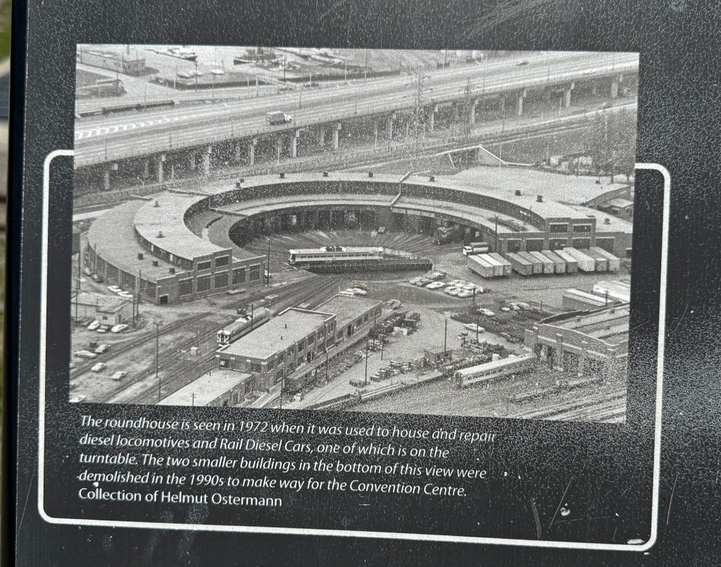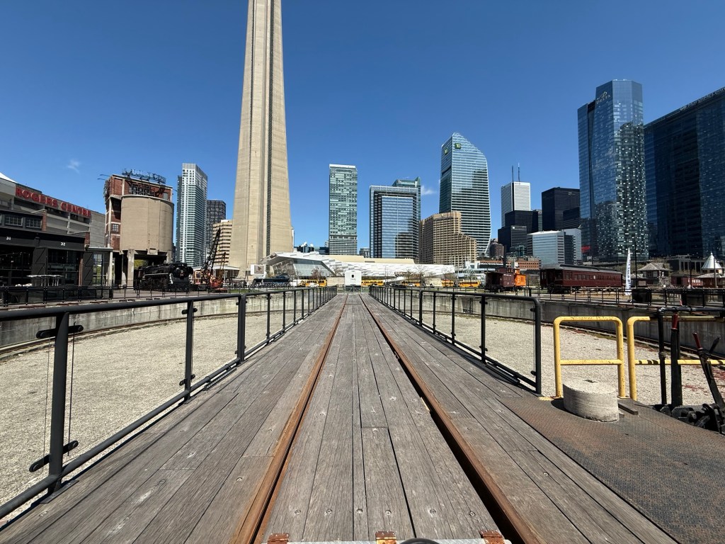 Right near the CN tower, there’s a train museum. I didn’t go in, but I did get some photos from the outside, where the ‘roundabout’ they used to use to get trains into all their sheds is still in place since the 1920s.