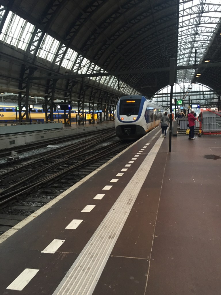 So having checked the timetables we headed off to Amsterdam Centraal, bought our βOV-Chipkaartβ from the machine, and in we went, ready to catch the 9:38 to Eindhoven. That would get us there at 10:57, perfect timing to meet up with Gerda and Uco at 11AM. Β However, before long it started to feel like we were back in Sydney. Sure, I couldnβt understand the full announcement, but as it happens the words βdefective trainβ sound pretty much identical in Dutch and English. The train eventually turned up, about 15 minutes late, and we were soon on our way.