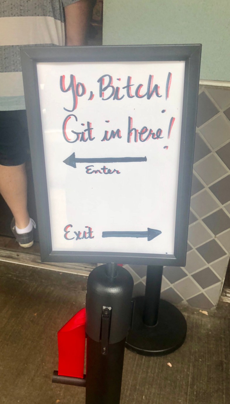 Moving right along we passed a food stall whose name I’ve forgotten – maybe because we didn’t get any food there. But the owner/chef was lovely to talk to, and her series of signs behind the counter offered plenty of good advice, and a bit of attitude 🙂