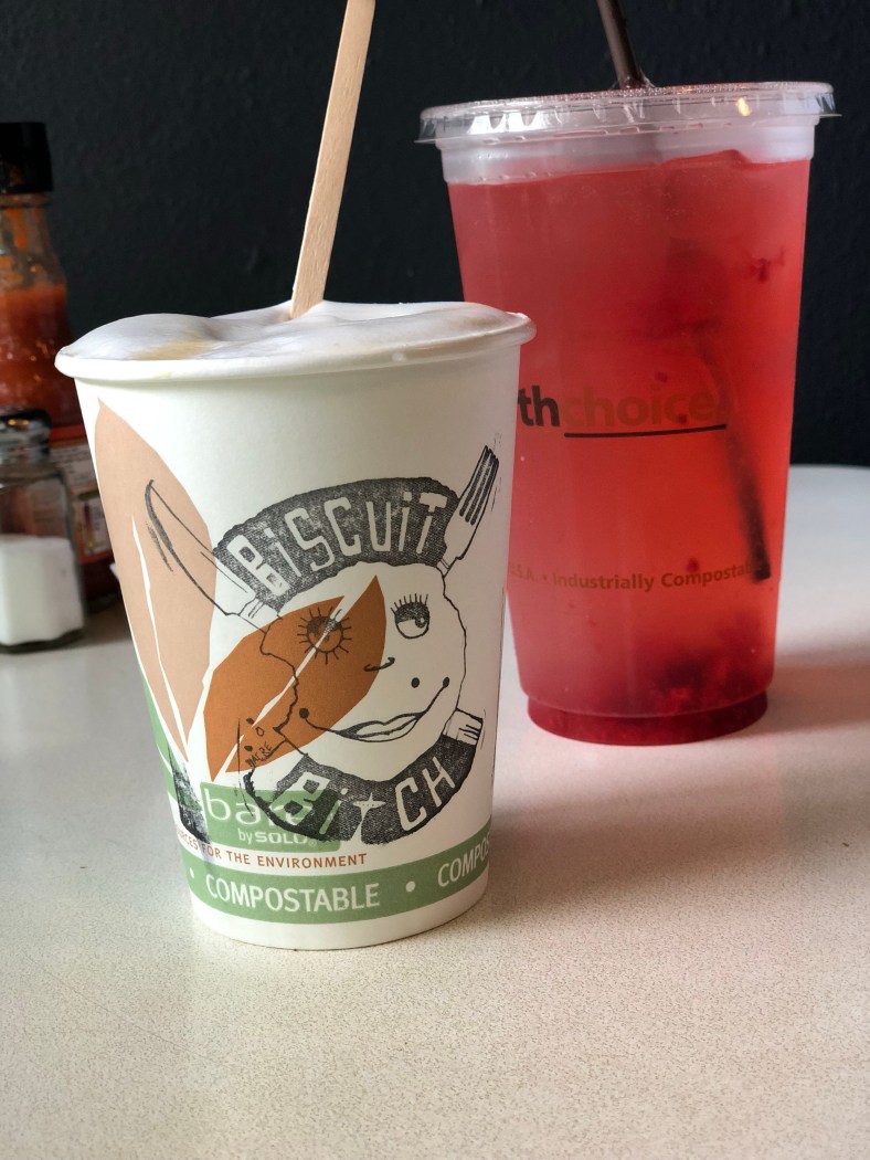 Indi Chocolate was the starting point of the tour, where we met up with our excellent hosts Heather and Kenna. Our first free (ok, we paid for the tour, so technically none of the food is free) food sample was at another biscuit place – “Honest Biscuit”. We sampled an honest biscuit – just on its own, no grace, no other “fixin’s”. It was a cheesy-crust one, and very soft and light inside. Delicious – you know, for a savoury scone 🙂